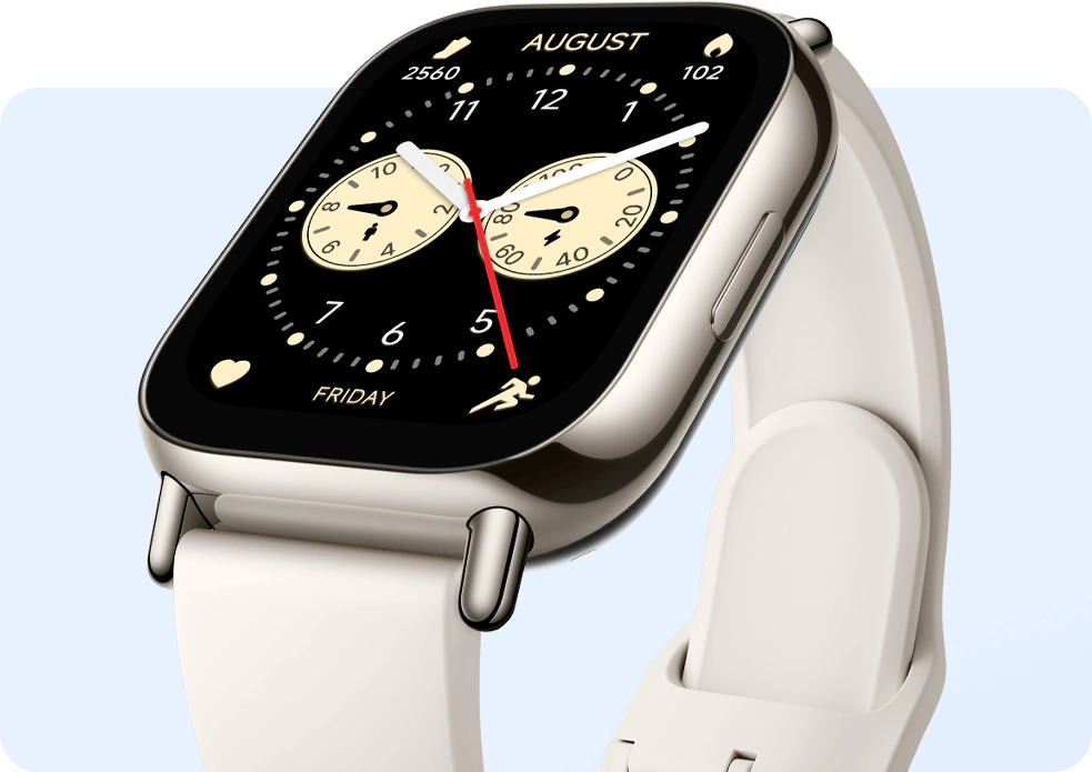 Equipado con una pantalla AMOLED cuadrada de 1,96" y una resolución de 410 x 502 píxeles, te brinda imágenes nítidas y vibrantes. Además, incorpora sensores avanzados como frecuencia cardíaca con oxígeno en sangre, acelerómetro y giroscopio para monitorear tu salud en tiempo real.